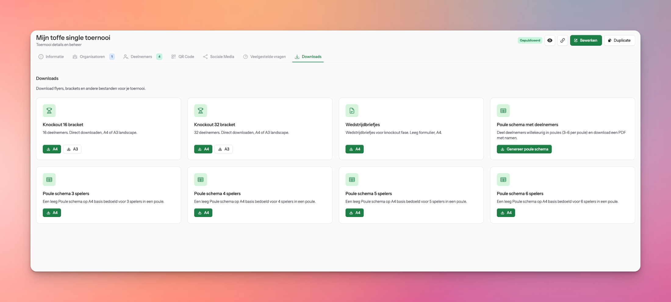 Handig om direct te printen en op te hangen tijdens het toernooi.
